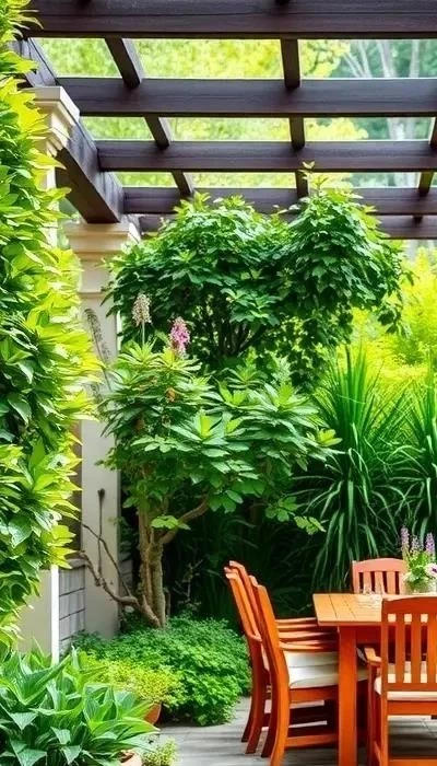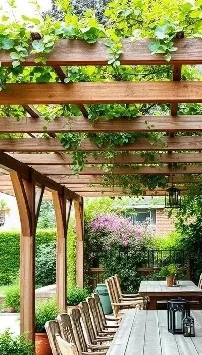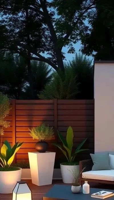 Освещение играет ключевую роль в создании атмосферы уюта. Используйте гирлянды, фонари, свечи и встроенные светильники. Защита от солнца и дождя обеспечивается навесами, зонтами и маркизами. Зонирование поможет разделить патио на функциональные зоны.