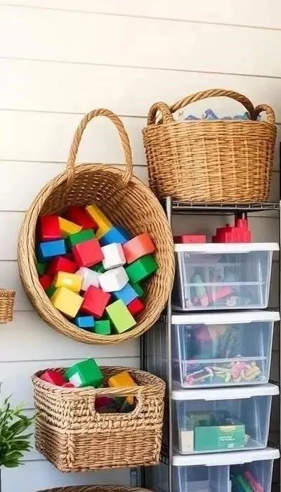 Корзины – стильный и функциональный элемент декора, который можно использовать для хранения мягких игрушек, пледов и других текстильных изделий. Они могут быть плетеными из лозы, ротанга или других натуральных материалов. При выборе корзины обращайте внимание на ее размер, форму и прочность. Важно, чтобы выбранные системы хранения соответствовали стилю веранды и были безопасны для ребенка. Избегайте острых углов и хрупких материалов.