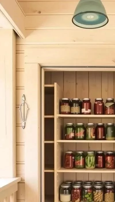 Организация пространства: Используйте органайзеры, корзины и контейнеры для хранения мелких заготовок, таких как соленья и маринады. Это поможет поддерживать порядок на веранде и облегчит поиск нужных продуктов.