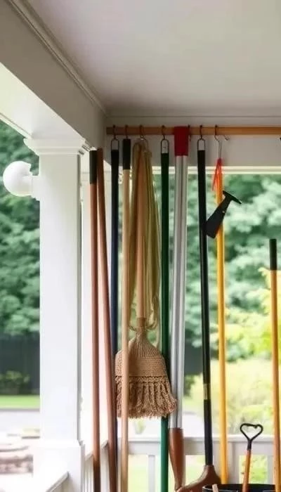 Используйте вертикальное пространство максимально эффективно. Подвесные системы, крючки и настенные полки помогут освободить место на полу. Не складируйте на веранде вещи, которые не относятся к садовым или хозяйственным инструментам. Веранда должна быть функциональной зоной, а не местом для хранения ненужного хлама. Защитите инструменты от влаги и пыли, используя чехлы, ящики или шкафы.