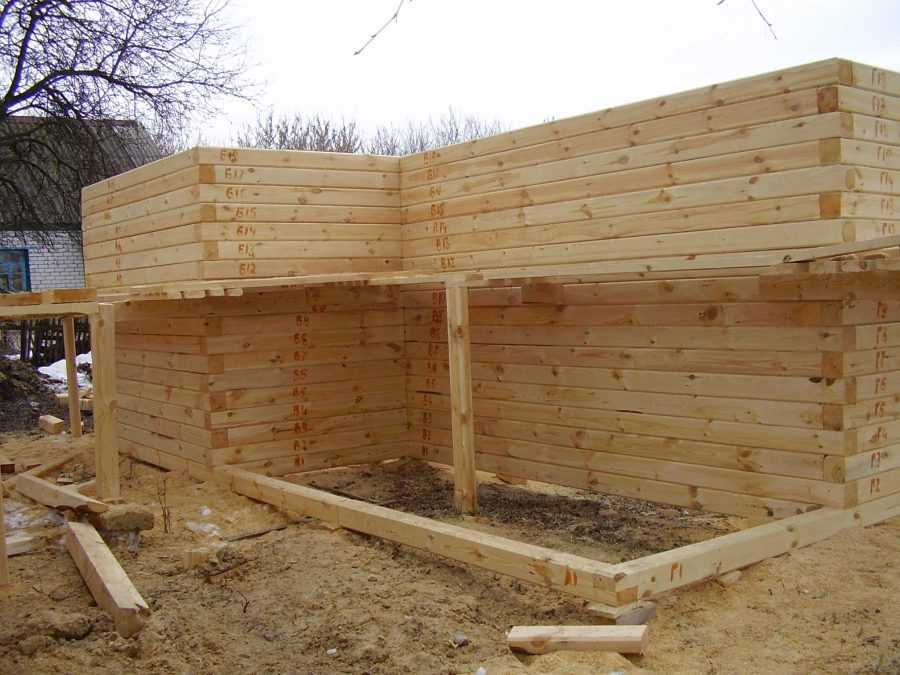 Для сборки используют крепежные штыри, расстояние между которыми по длине стен должно быть не менее 1,5 метра. Просверленные отверстия для крепежных деталей должны проходить сквозь всю толщину верхнего бруса и входить наполовину в нижний.