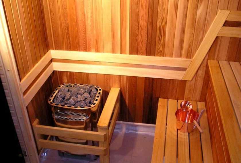 Особое внимание необходимо уделять и декоративному оформлению самой парилки, в которой отделку стен выполняют вагонкой, а для полов выбирают гранитную плитку. Главным предметом в интерьере парилки считается печь каменка, она должна выглядеть одновременно просто и красиво
