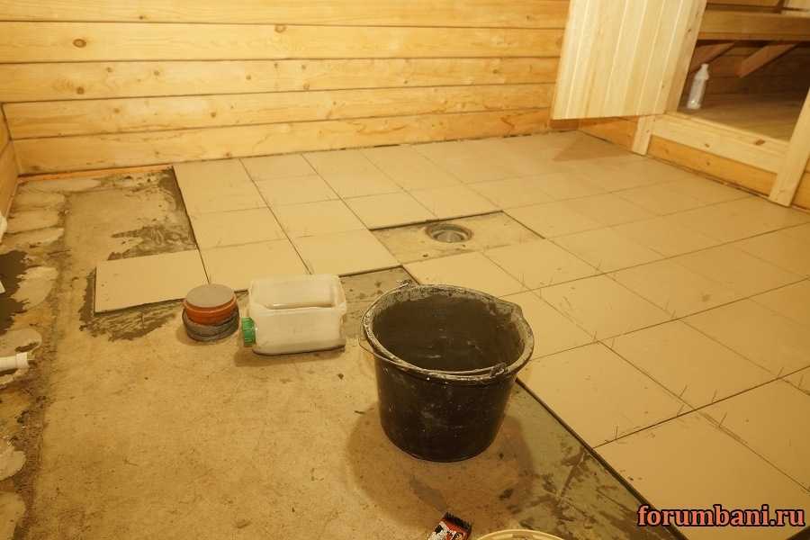 В моечном помещение для отделки стен можно применять плитку. Для реализации этого проекта была использована прочная плитка толщиной 8 мм. Укладка была произведена на морозо- и влагостойкий плиточный клей. Толщина слоя клея составила около 10 мм.