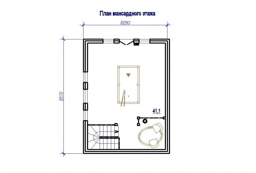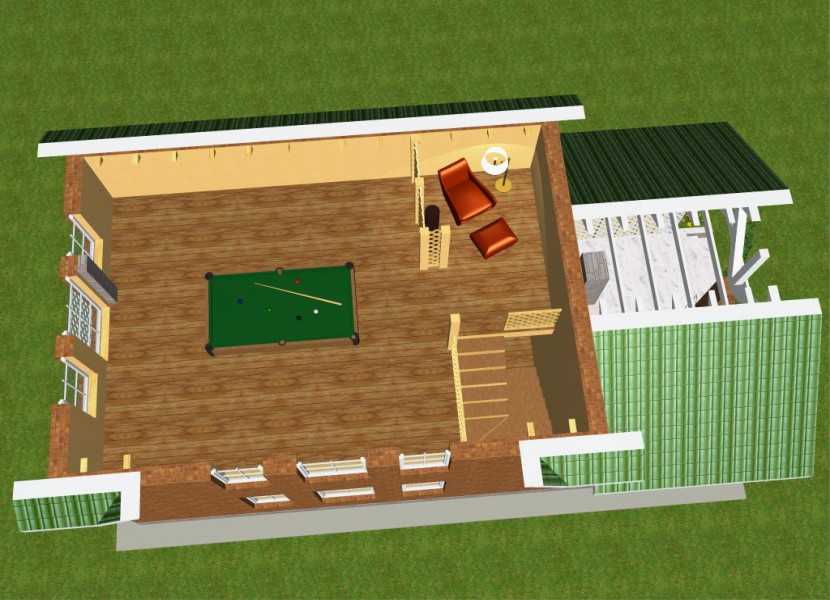 Войти в мансарду можно с помощью лестницы, которая расположена в коридоре. Разработчики проекта предполагают, что именно здесь будет идеальное место для расположения бильярдного стола и удобных кресел.