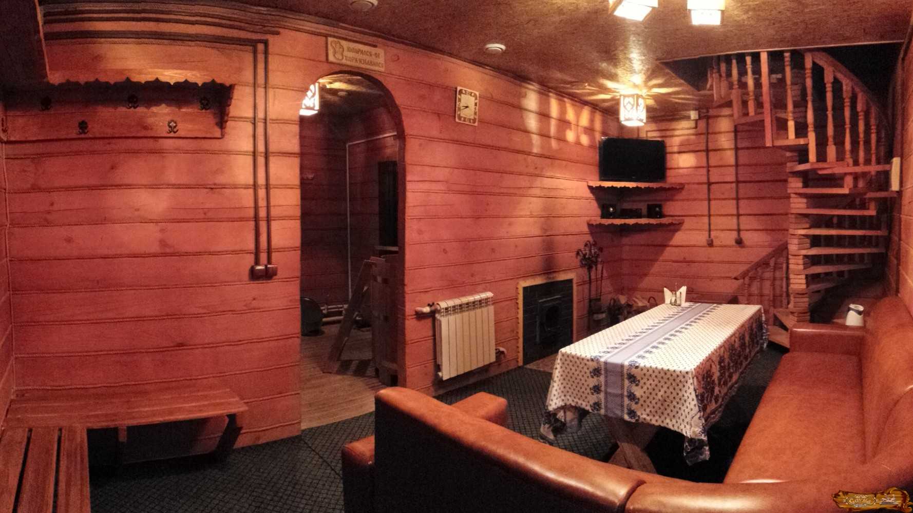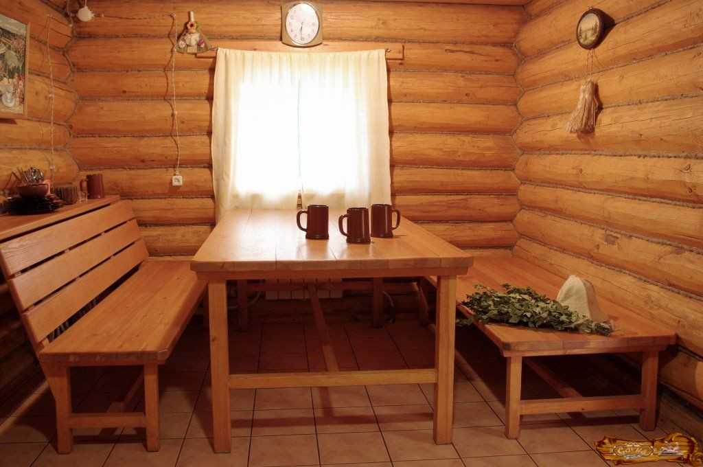 - грубоватые лавочки и большой стол из дерева в предбаннике;