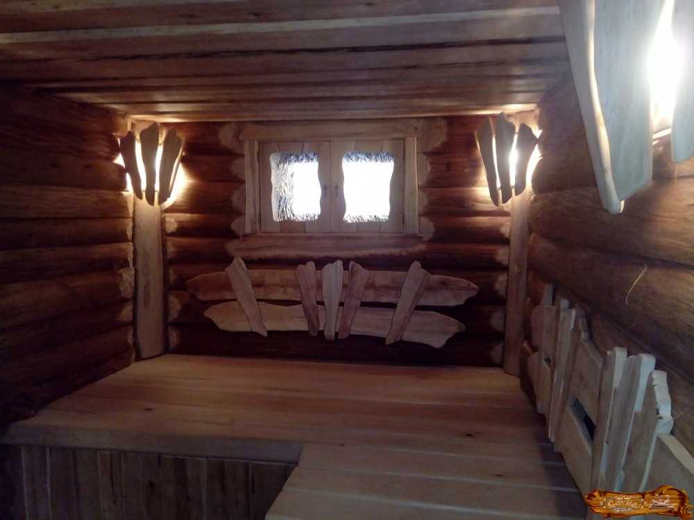 Что касается мелких деталей, то интерьер парилки бани обязательно должен включать в себя черпак и ведро. Это важные элементы, без которых парилка будет несовершенной.