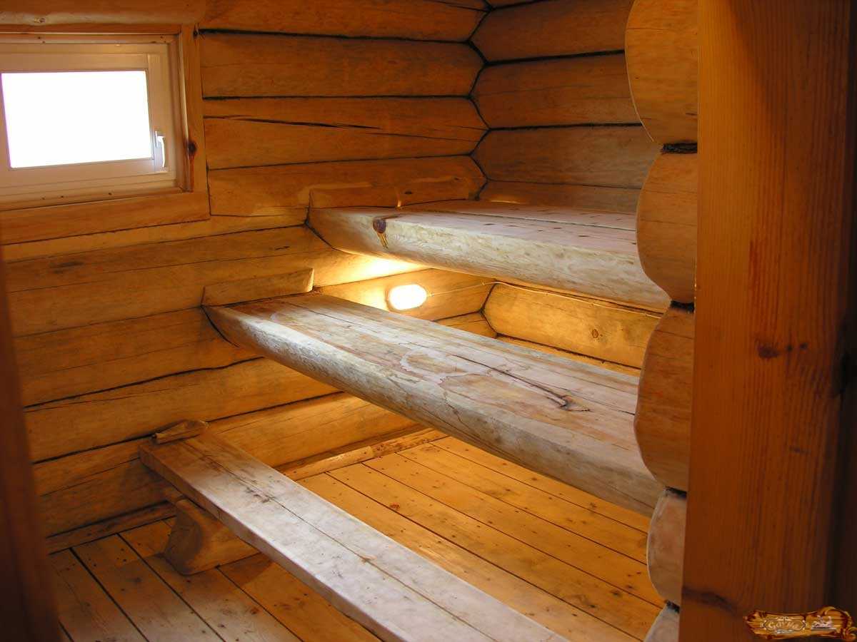 Обустройство русской бани немыслимо без полок в парной, на которых люди расслабляются и делают массаж банными вениками. Полки должны быть обязательно деревянными и располагаться на высоте порядка одного метра от пола. Обычно длина их составляет 70 сантиметров, а ширина − полметра. В стандартной парилке русской бани может быть три уровня лежаков и даже дополнительная откидная полочка − самая высокая. Каждый человек сможет выбрать себе лежанку по комфортности температуры: на самой высокой расположатся жароустойчивые любители баньки, а полки пониже подойдут для новичков, так как на нижнем уровне наименее высокая температура воздуха. Кроме того, нижние полки могут быть использованы как опорная ступенька для того, кто будет массажировать вениками человека, располагающегося на верхнем лежаке.