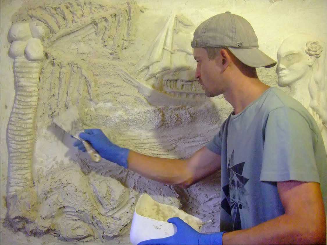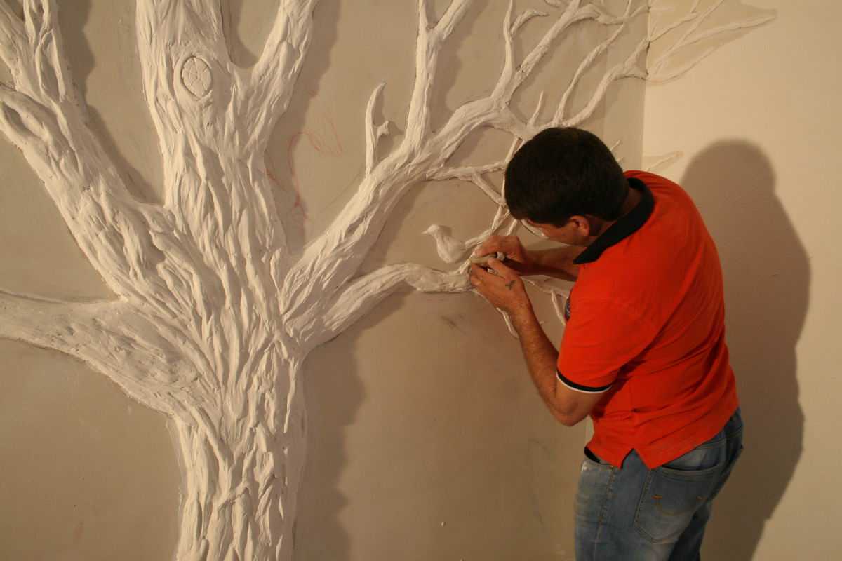 Часть стены, где будет расположен барельеф, необходимо подготовить. Если стена окрашена, и краску снять невозможно, то используется бетонный раствор, который тонким слоем наносится на стену. После высыхания шероховатая стена грунтуется. Если на стене есть обои, их нужно снять, а поверхность также загрунтовать и зашпаклевать. Далее приступают непосредственно к формированию рисунка. Нанести его можно по трафарету при помощи карандаша или тонкого маркера. Умеющим хорошо рисовать, трафарет не нужен, здесь можно дать волю своей фантазии.