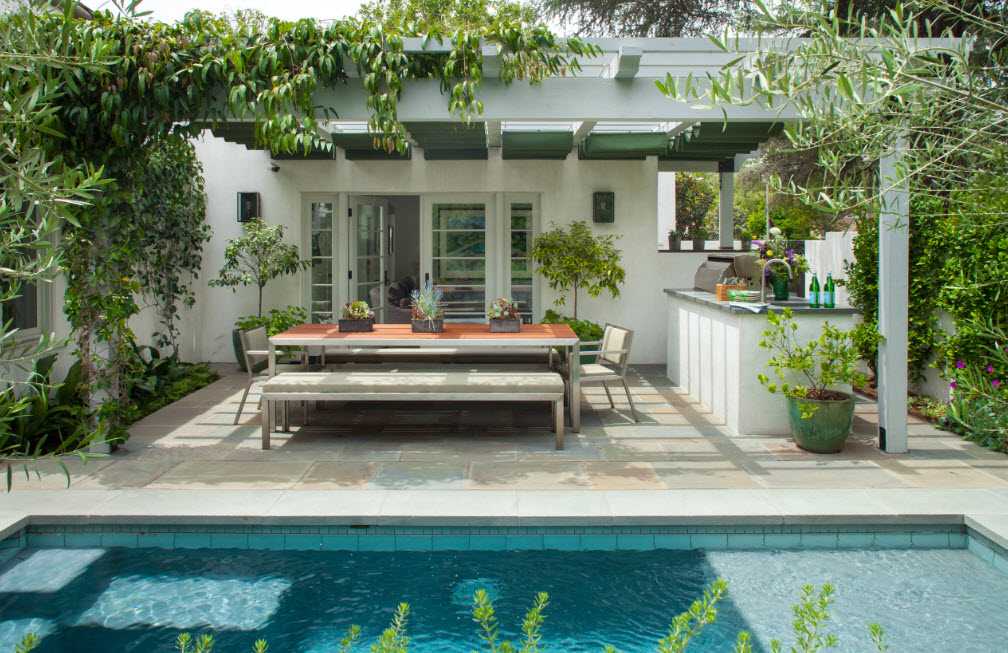 - Патио – комната, стенами которой служат стены прилегающих построек. Тихое и скрытое место, которое обустраивается навесом любого типа.