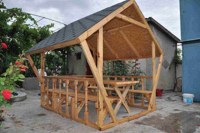 Фотопримеры беседок из подручных материалов, возведённых своими руками