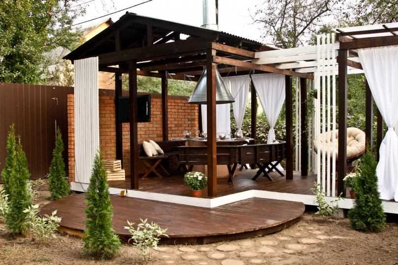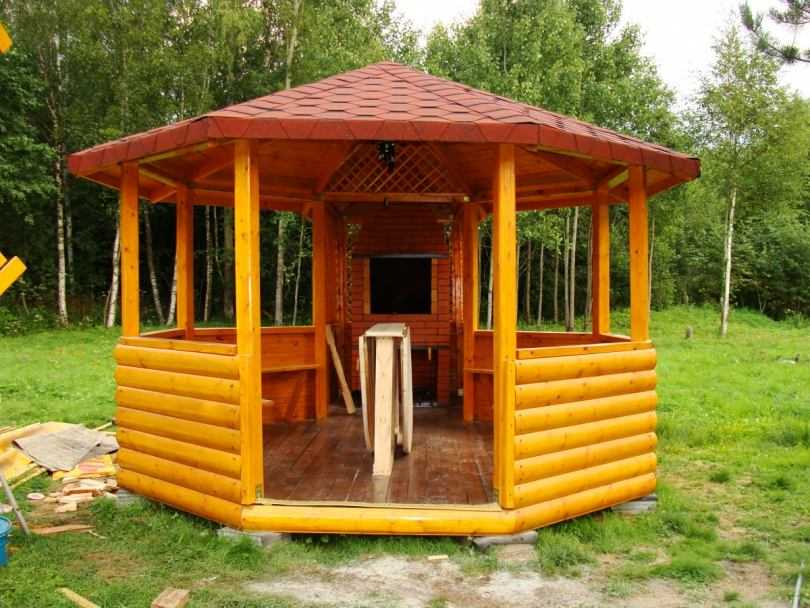 В такой беседке можно соорудить безопасное место для будущего мангала или сделать летнюю кухню.