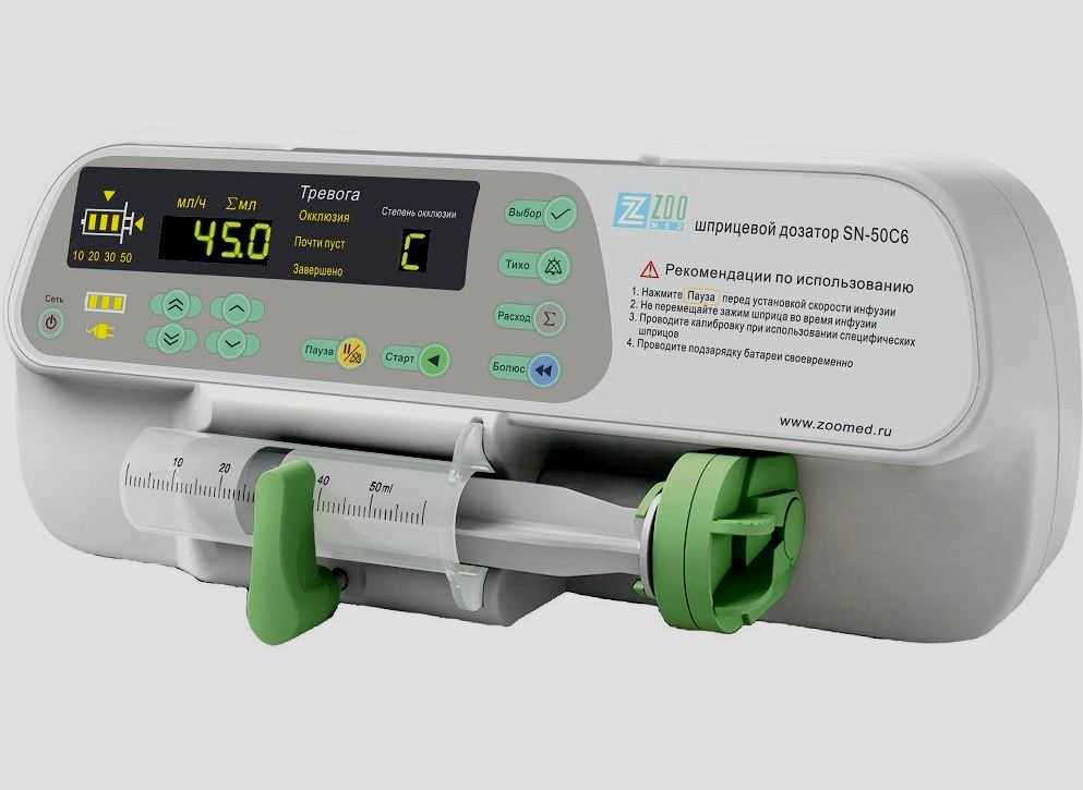 Часто в медицинской практике возникает ситуация, когда необходимо больному ввести препарат минимальными дозами в течение длительного времени. Для исключения неточных действий медицинского персонала и оптимизации работы специалистов медучреждения приобретают специальные приборы – шприцевые дозаторы, которые относятся к категории высокоточного медицинского оборудования, обеспечивающего снабжение пациента необходимыми лекарствами в строго установленном объеме.