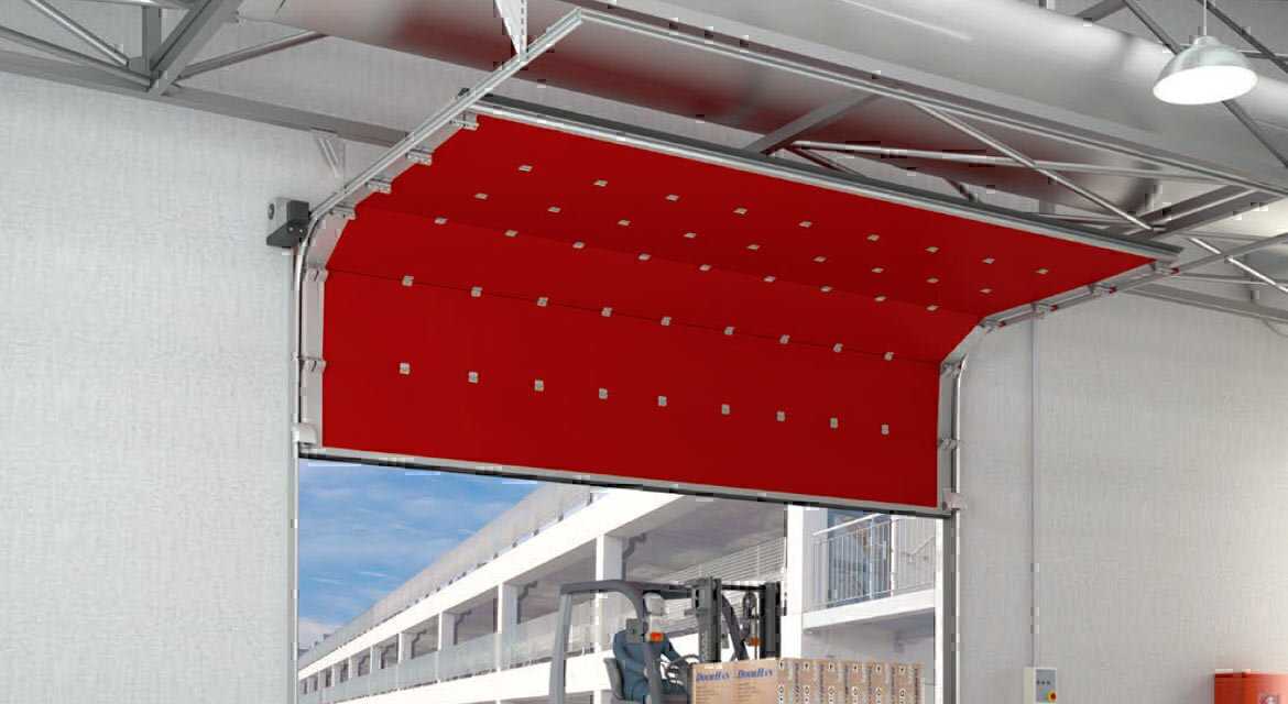 Этот вид имеет гибкое полотно, состоящее из отдельных секций, соединенных петлями. Данная разновидность быстро получила признание у потребителей благодаря экономии места. Ворота открываются вертикально и в открытом виде располагаются под потолком. (Рис. 1) Секции соединяются между собой в замок. Места соединений уплотнены специальной резинкой, которая обеспечивает герметичность в закрытом виде и во время движения. (Рис. 2) Уплотнители также располагаются по всему периметру полотна, а в месте прилегания к полу они двойные.