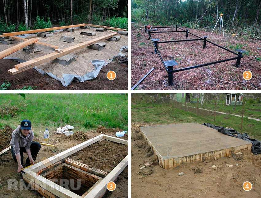 Поскольку бытовки не нуждаются в капитальном фундаменте, их сборку можно выполнить самостоятельно. Предварительно нужно подготовить место на даче и уложить бетонные блоки или брусья на слой гравия.