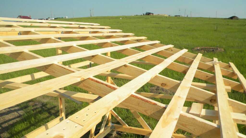 Для стропильной системы кровли используют те же материалы, что и для каркаса. Обрешетку изготавливают из доски-дюймовки. Нужно следить, чтобы не было обзола, иначе дерево быстро сгниет.