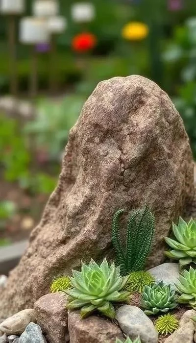 - Минимализм: Каменная клумба с небольшим количеством растений, подчеркивающая естественную красоту камня.
