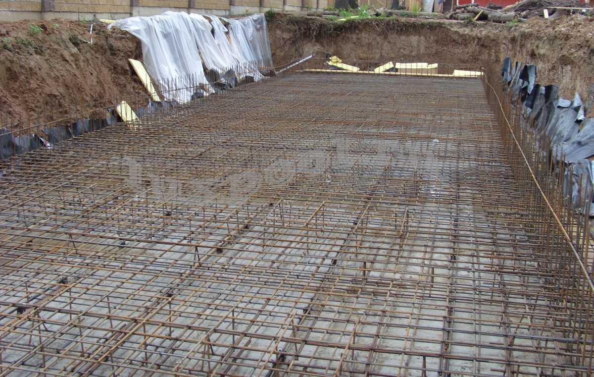 По сути, сооружение бетонной чаши бассейна представляет собой создание типичной железобетонной конструкции, состоящей из армирующего металла и бетона. Для армирования выбирают ребристый стальной прут сечением 8-14 мм, для формирования чаши овальной формы можно использовать прут диаметром 10 мм, который продается в бухтах и не имеет ограничения по длине. Сетку из арматуры обустраивают с ячейками 20*20 см. Армирование проводят в два яруса, под прутки дна чаши желательно подкладывать обломки кирпича, чтобы при заливке бетона они остались в толщине раствора. Не забудьте сделать выпуски арматуры для крепления каркаса стен.