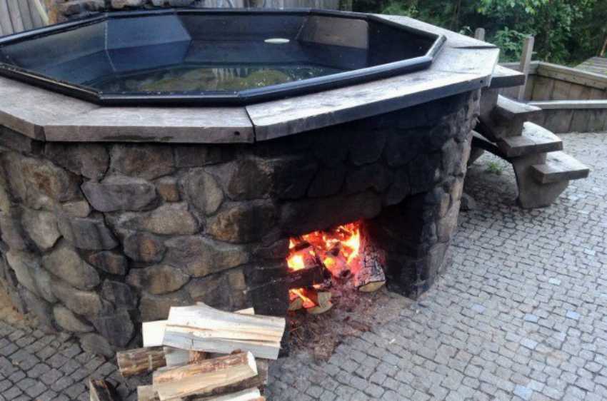 В плане размещения печи купели разделены на два типа: внешний и внутренний обогрев. Внешний, подразумевает подогрев на открытом пространстве непосредственно под купелью. Внутренний обогрев намного безопаснее, но не настолько практичен в плане подогрева и удержания температуры.