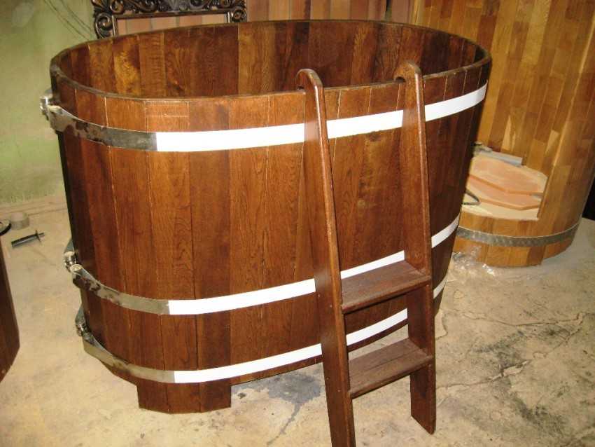 - Деревянные купели – то место, куда человек окунается после парилки. Это с легкостью заменяет бассейн, ведь на дачном участке его не всегда реально обустроить. Средние размеры для купели – 1,5 м в диаметре. Здесь может находиться сразу несколько человек;