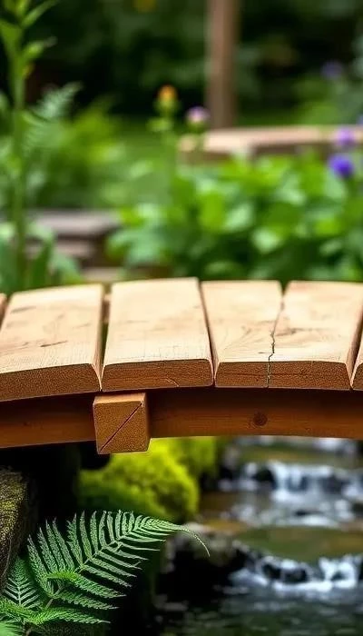 Декоративный мостик из подручных материалов – креативный и экономичный вариант. Плюсы: низкая стоимость, уникальный дизайн. Минусы: невысокая прочность, требует фантазии и творческого подхода. Материалы: старые доски, ветки, камни. Стоимость: от 2000 рублей.