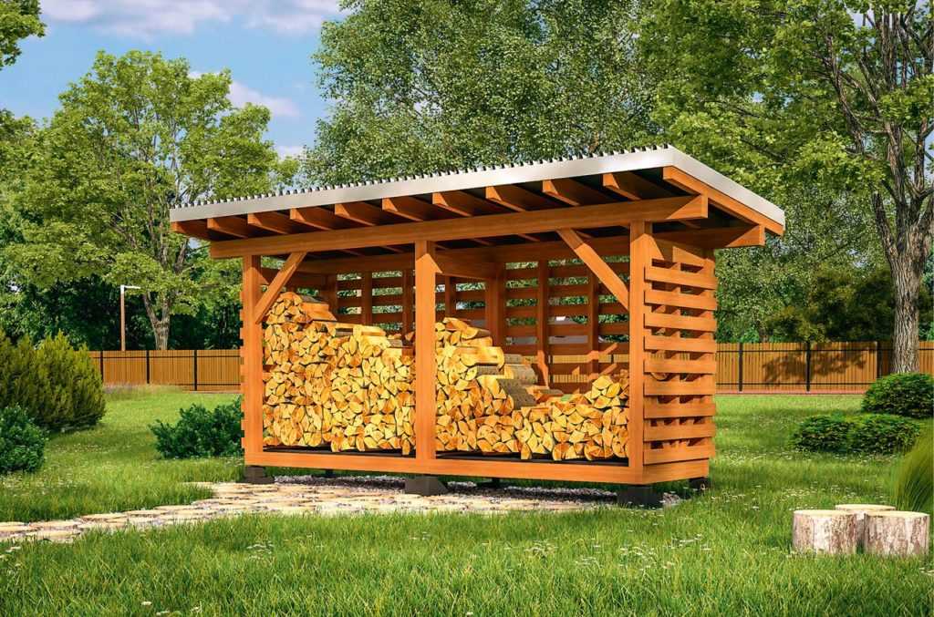 Перед его строительством необходимо выбрать подходящее место — лучше всего подойдут солнечные стороны, так как они позволяют древесине быстро высохнуть. Кроме того, крытый навес защищает накопленный материал от дождя и снега.