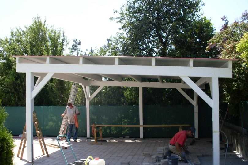 Мастер-класс по строительству навеса своими руками в видео ниже.