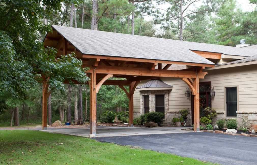 Навесы представляют собой опорные вертикальные столбы и крышу. Каркас делается из дерева, металла, реже из бетона, камня, кирпича.
