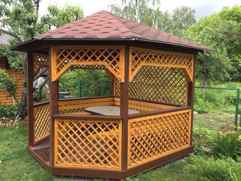 Своими руками сделать обрешетку беседки можно из следующих материалов: