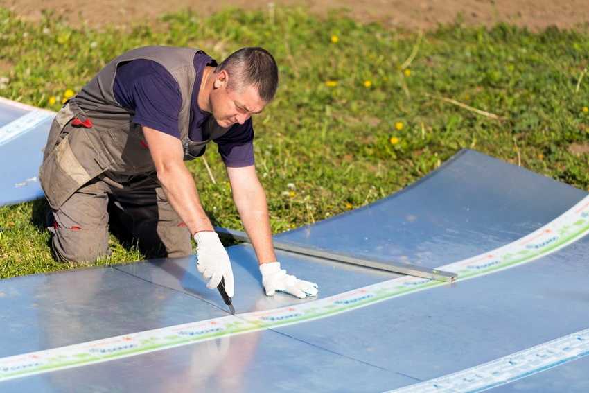 Разместите лист поперек стоек, и вы защитите его от деформации. Также следует отметить, что монтируются листы защитной пленкой вверх, которая удаляется после монтажа.