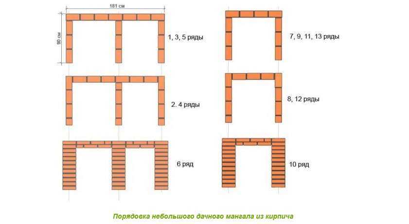 При строительстве мангала из кирпича нужно чётко соблюдать порядовку