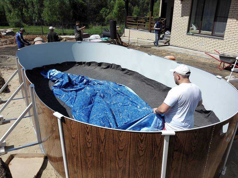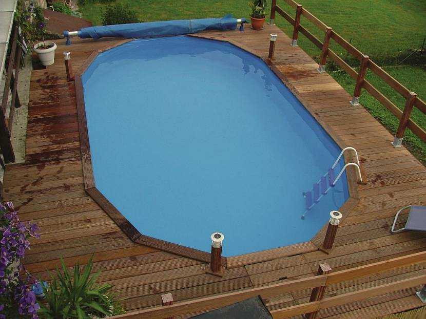 Полностью исключить контакт полотна с остатками растений поможет сооружение, которое поднимает бассейн над уровнем почвы, тем самым обеспечивая его долговечность.