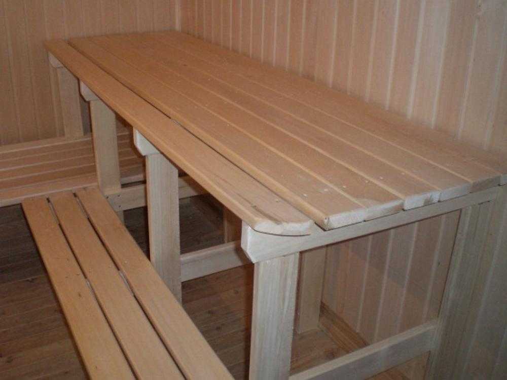 Перед тем как сделать скамейку для бани, следует продумать ее конструкцию. Минимальный размер изделия – 1,5 м в длину и 40 см в ширину. Оптимальные параметры: длина – 1,8 м, а ширина – 60 см. Чаще всего используют скамейки, прикрепляемые к полу либо стенам бани. Встречаются и переносные, а также разборные аналоги, позволяющие выносить их на просушку.