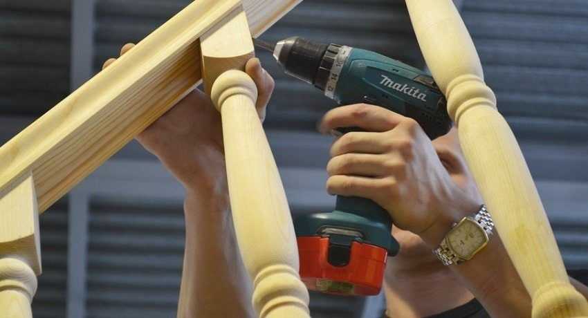 В поручнях в местах соединения с балясинами вырезаются пазы, после чего они фиксируются на клей и саморезы. |