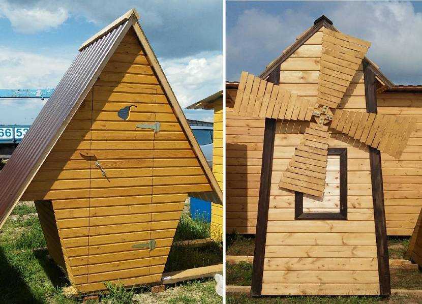 На замену классическим прямоугольным туалетам дачники всё чаще предпочитают ставить простые, но достаточно оригинальные конструкции треугольной и трапециевидной формы. Так называемые туалеты-шалаши установлены и успешно обслуживают владельцев многих фазенд