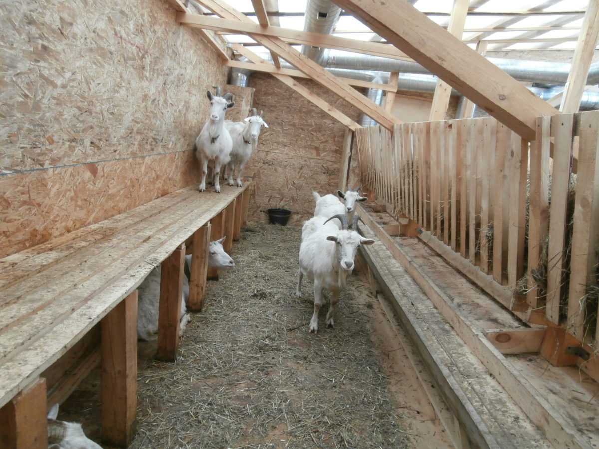 Как правило, внутри козлятника непременно устанавливают стойла. Необходимое количество подобных маленьких загонов рассчитывают, отталкиваясь из числа особей. Предпочтительно создать единичные стойла для каждого животного: в результате они будут чувствовать себя удобно, между ними не случится драк, а удои увеличатся.