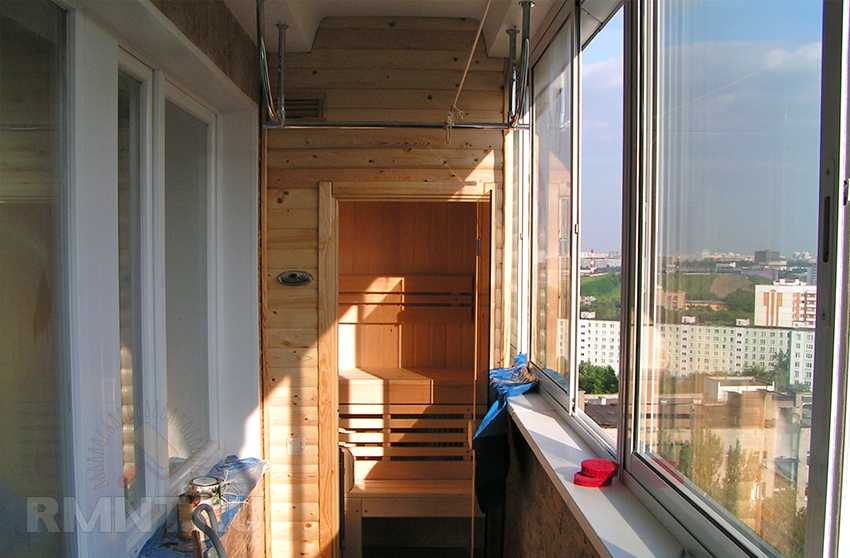 Минусы: большой объем работ по переоборудованию и утеплению помещения, а так же подведению коммуникаций, соответственно, высокая цена, небольшая площадь балконов или лоджий вносит ограничение на вместимость готовой сауны.