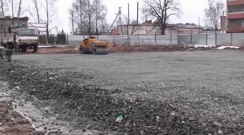 Что касается процесса ее устройства, то он очень сложен и требует специальной техники, навыков и умений. Щебень толщиной 0,1 м насыпается на выровненный грунт и утрамбовывается виброплитой. После этого по периметру строится опалубка. Для придания подушке дополнительной прочности ее армируют металлическими прутьями. Далее начинают заливку бетона и на финальном этапе производят трамбовочные работы.