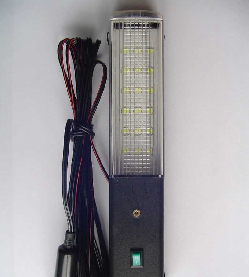Потребуется подобрать старый машинный аккумулятор, к которому подсоедините кусок светодиодной ленты. Мощности агрегата хватит для работы на протяжении несколько часов. За это время можно успеть собрать инструменты, разобранные узлы автомобиля.