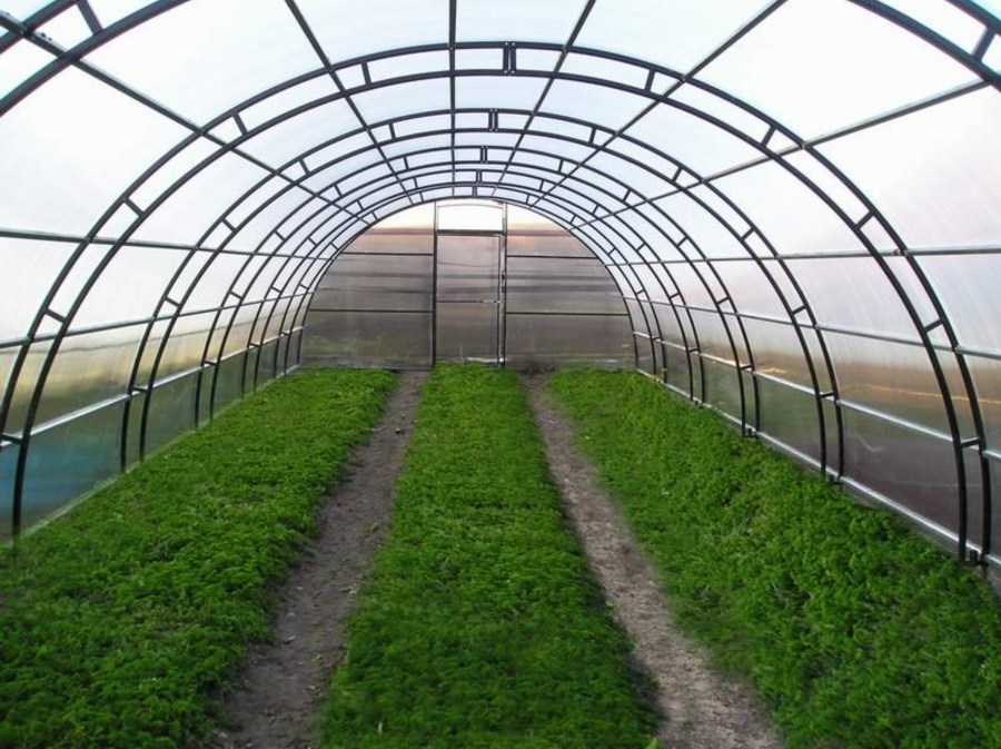 Получающаяся высота сооружения позволит беспрепятственно выращивать растения практически любых размеров. При этом будет обеспечен запас свободного пространства, необходимый для ухода за посадками.
