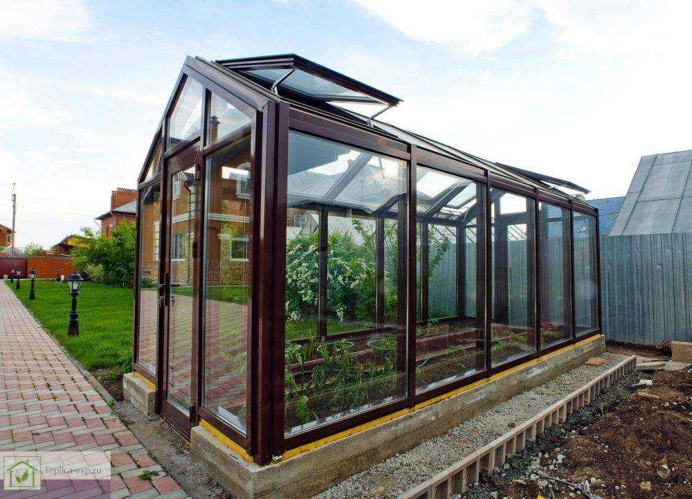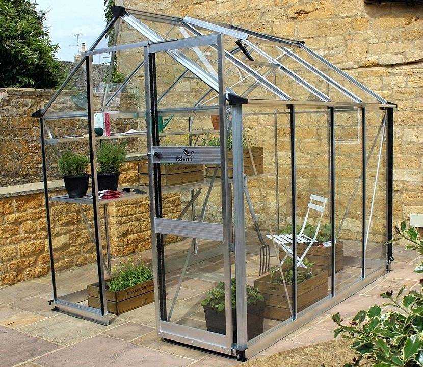 Эта теплица идеально подойдет для мини участков около таунхаусов. Конструкция из алюминия и стекла обладает элегантным дизайном.