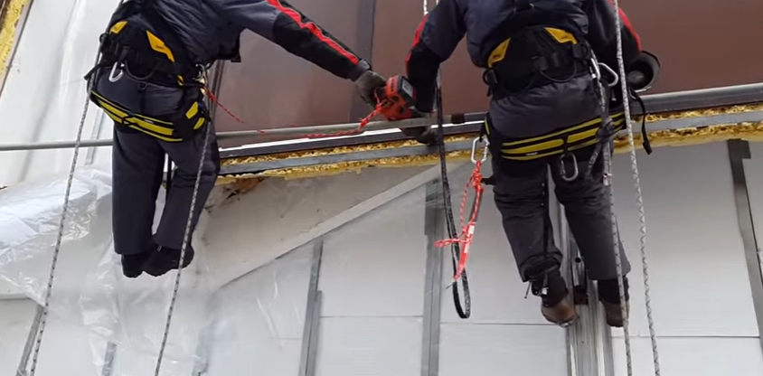 Установка фасадной системы на место