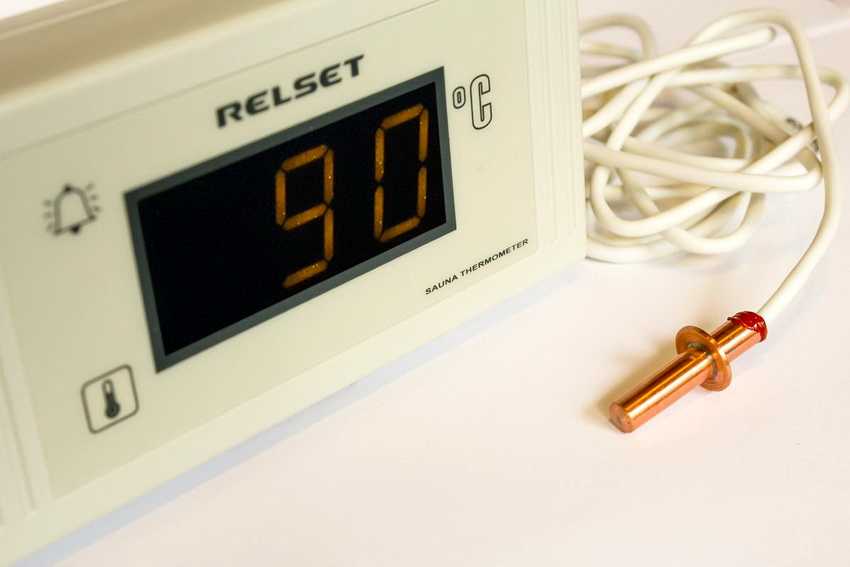 Обычно измеритель устанавливают внутри парной, а основной блок в предбаннике или в комнате отдыха. Добавим, что такие устройства дополнительно обязательно снабжаются гигрометром, который показывает влажность внутри парной. Это очень важный показатель, особенно для русской бани и финских саун, где надо точно выдерживать влажностной режим.