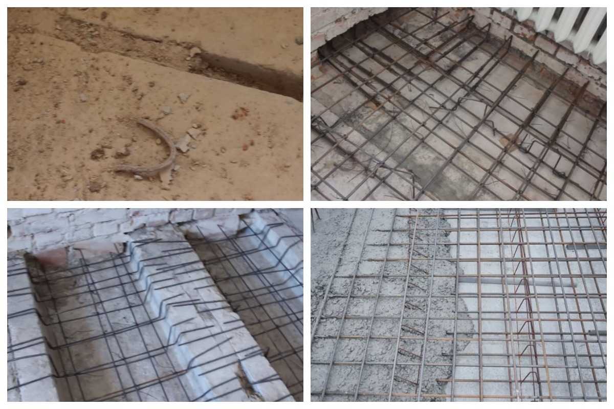 - Если повреждена арматура, то ее зачищают от ржавчины и обрабатывают специальными растворами, которые предотвращают появление коррозии металла.