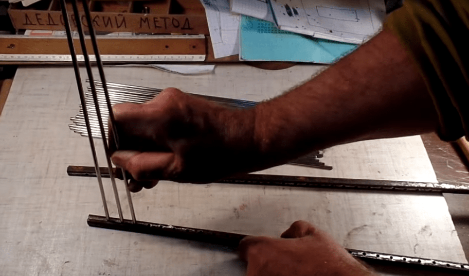 - подготовка прутьев из нержавеющей стали и монтаж рамы;