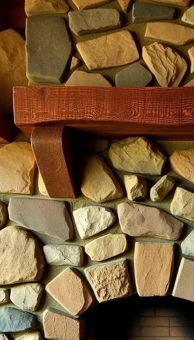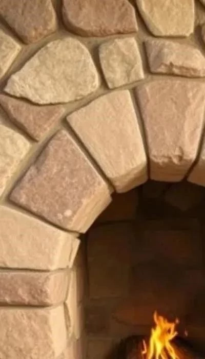 Натуральный камень (бут, плитняк, речной) – основа стиля, придающая камину массивность и природную красоту. Состаренный кирпич добавляет шарма и винтажности. Грубое дерево (массив, балки) используется для портала и декоративных элементов.