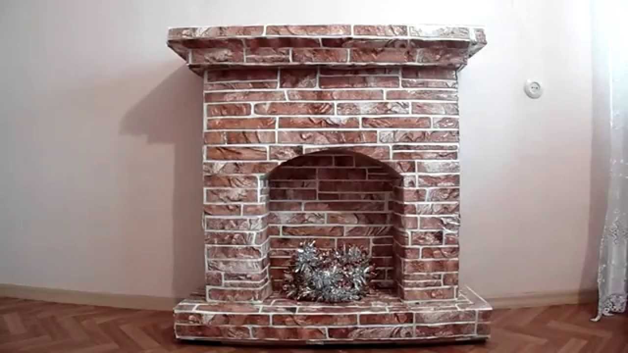 Отделка — самая приятная часть работы по изготовлению фальш камина. Его можно покрасить или оклеить бумагой, подходящими по расцветке обоями, использовать имитацию кирпичей из картона, декоративные элементы, плинтусы или потолочные плиты из пенополистерола. Очень нарядно и празднично смотрится камин, оформленный под красный кирпич; элегантно и благородно — имитация белого, бежевого или серого мрамора.