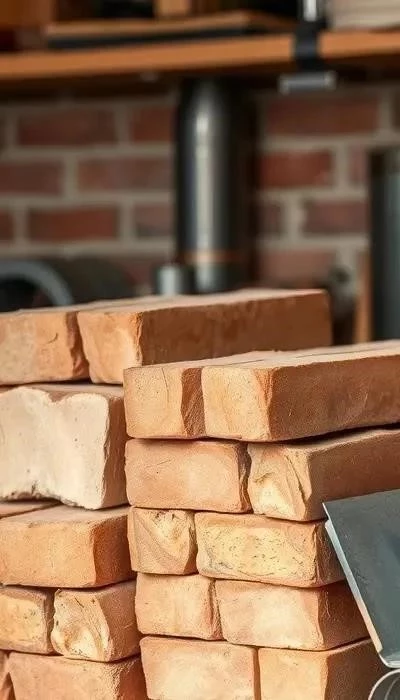 - Кирпич: Огнеупорный (шамотный) кирпич – около 200-300 штук, в зависимости от размера камина. Выбирайте кирпич с низкой водопоглощаемостью и высокой жаростойкостью.