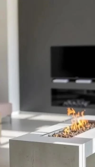 Популярность набирают встроенные модели, которые идеально интегрируются в стену, создавая эффект единого пространства. Такие камины практически незаметны в выключенном состоянии, что позволяет сохранить ощущение легкости и воздушности в интерьере. В качестве облицовки все чаще используют натуральный камень (мрамор, гранит), бетон, стекло и металл.