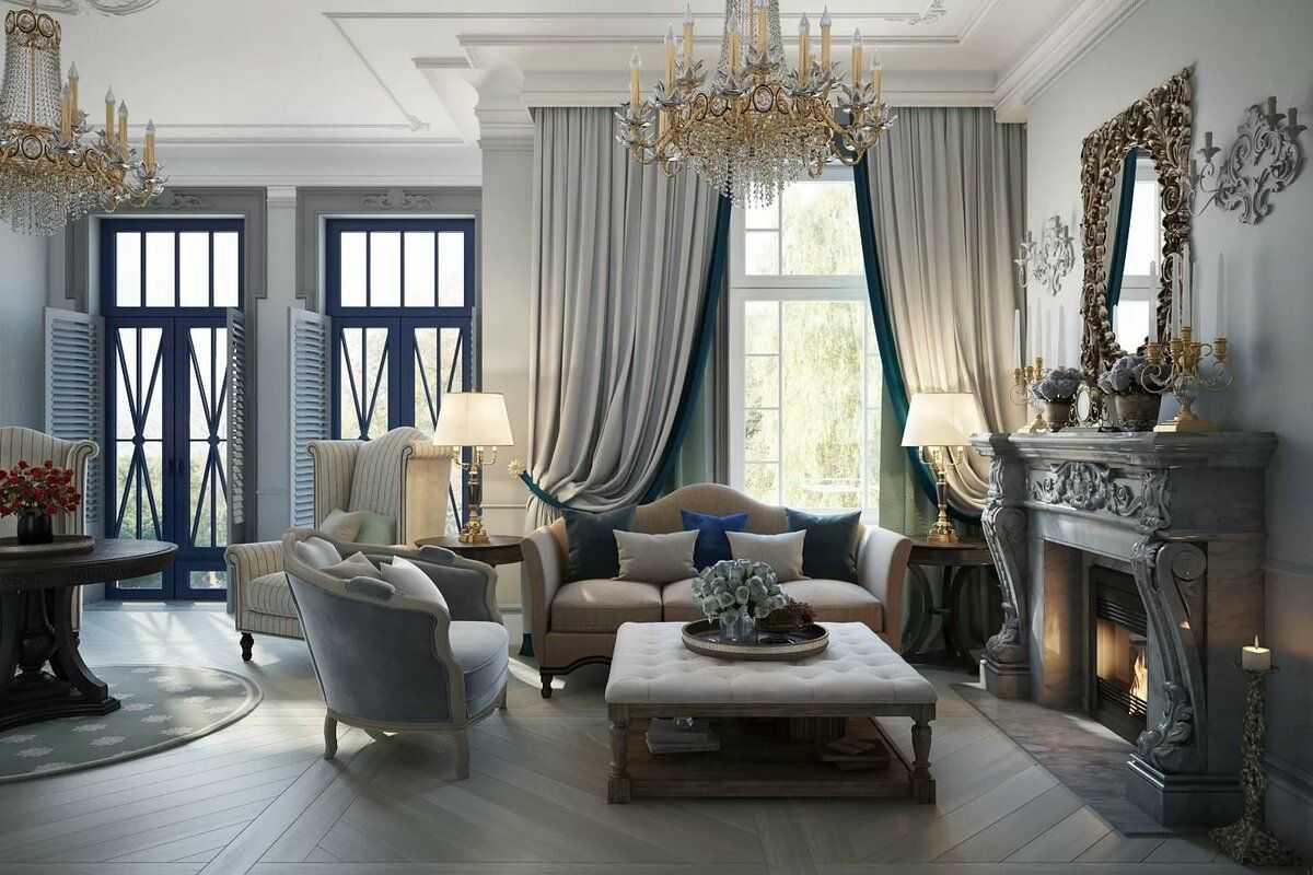 Особою атмосферу в комнате создадут тяжелые шторы из дорогих материалов, элитная мебель, лепнина на стенах и потолке. Подчеркнутьклассический дизайн камина стоит уникальными аксессуарами, расположенными на каминной полке. Это могут быть позолоченные подсвечники, элегантные вазы, часы, прочее.