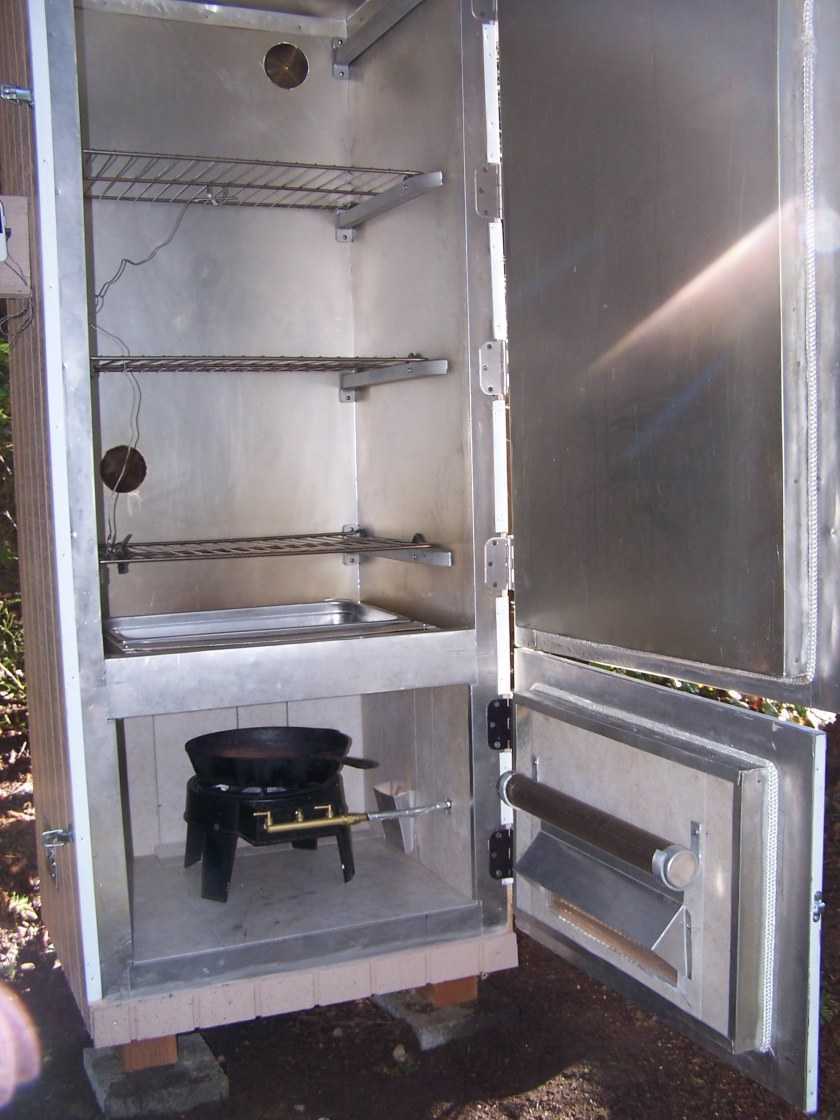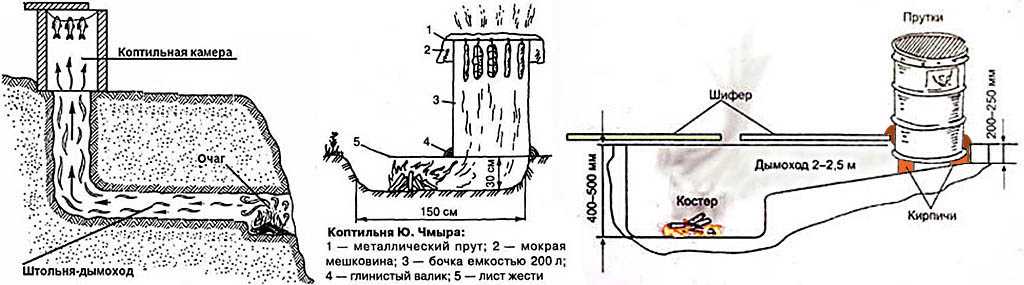 Самодельная коптильня для подобного способа обработки строится, как правило, на базе конструкции инженера Ю. Чмыра: